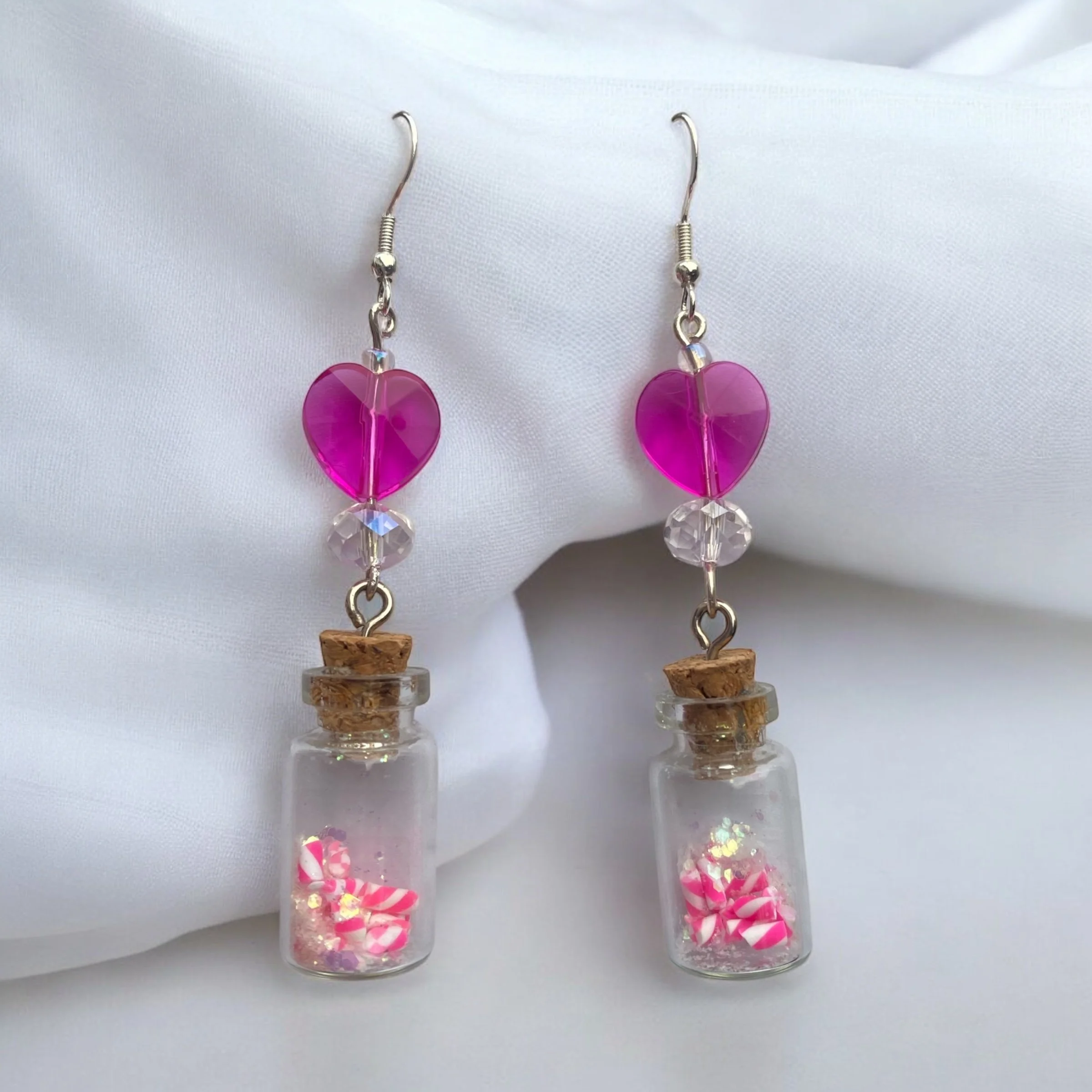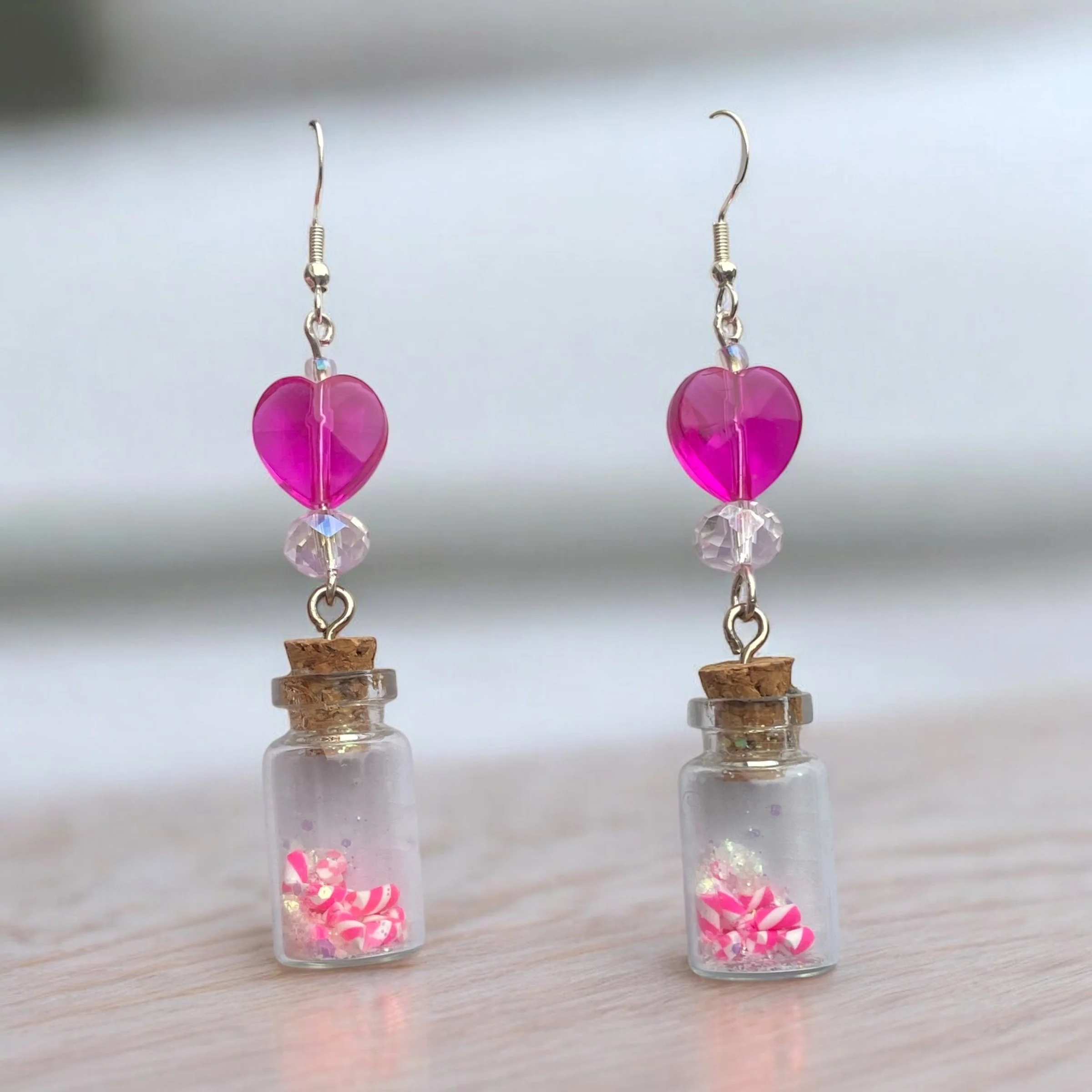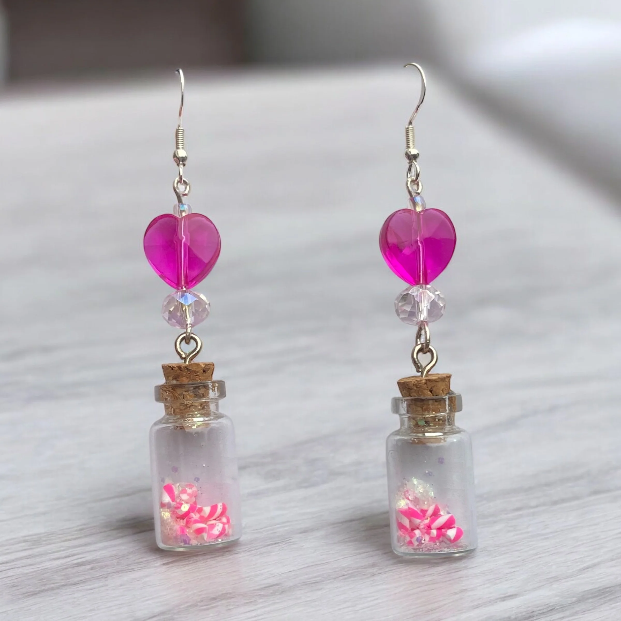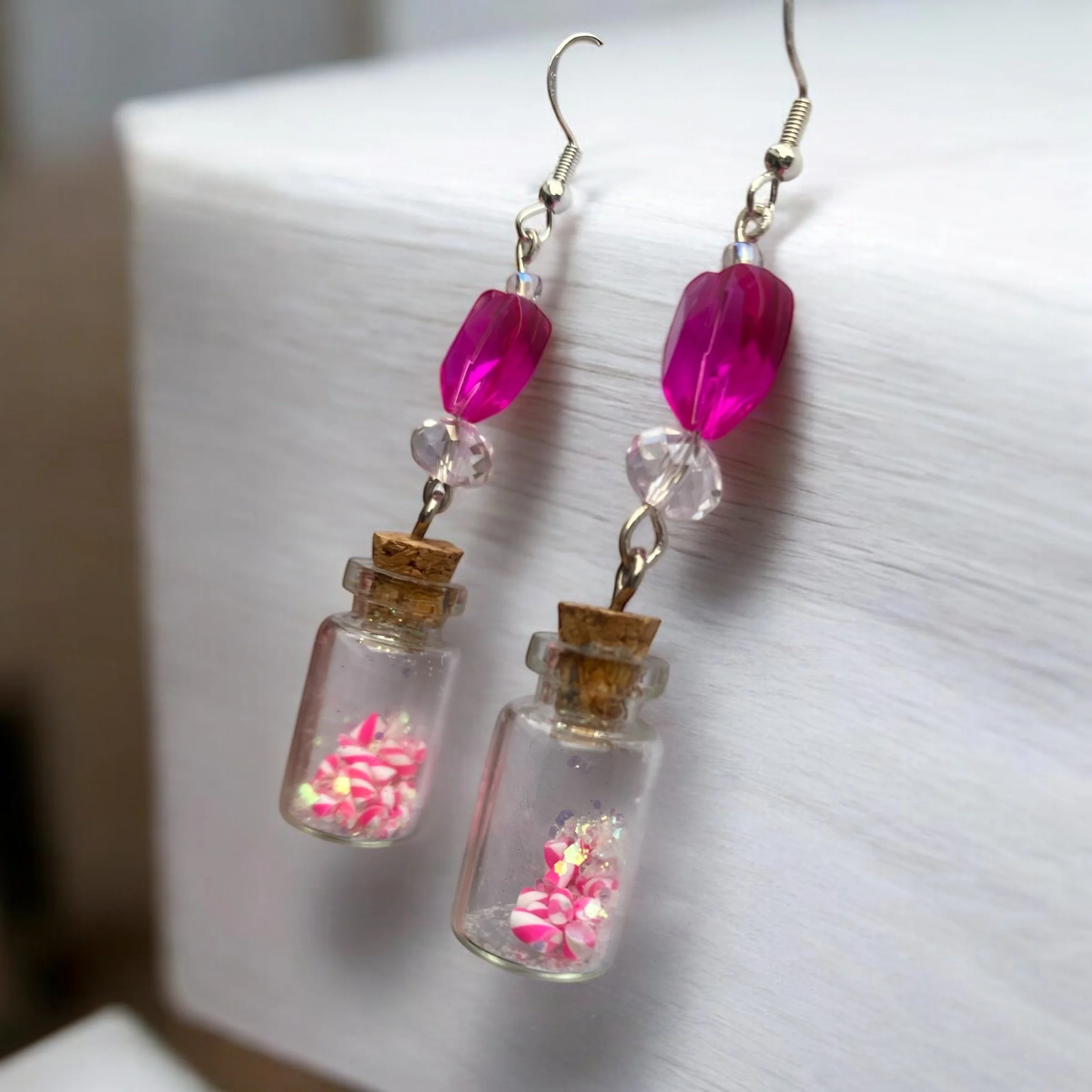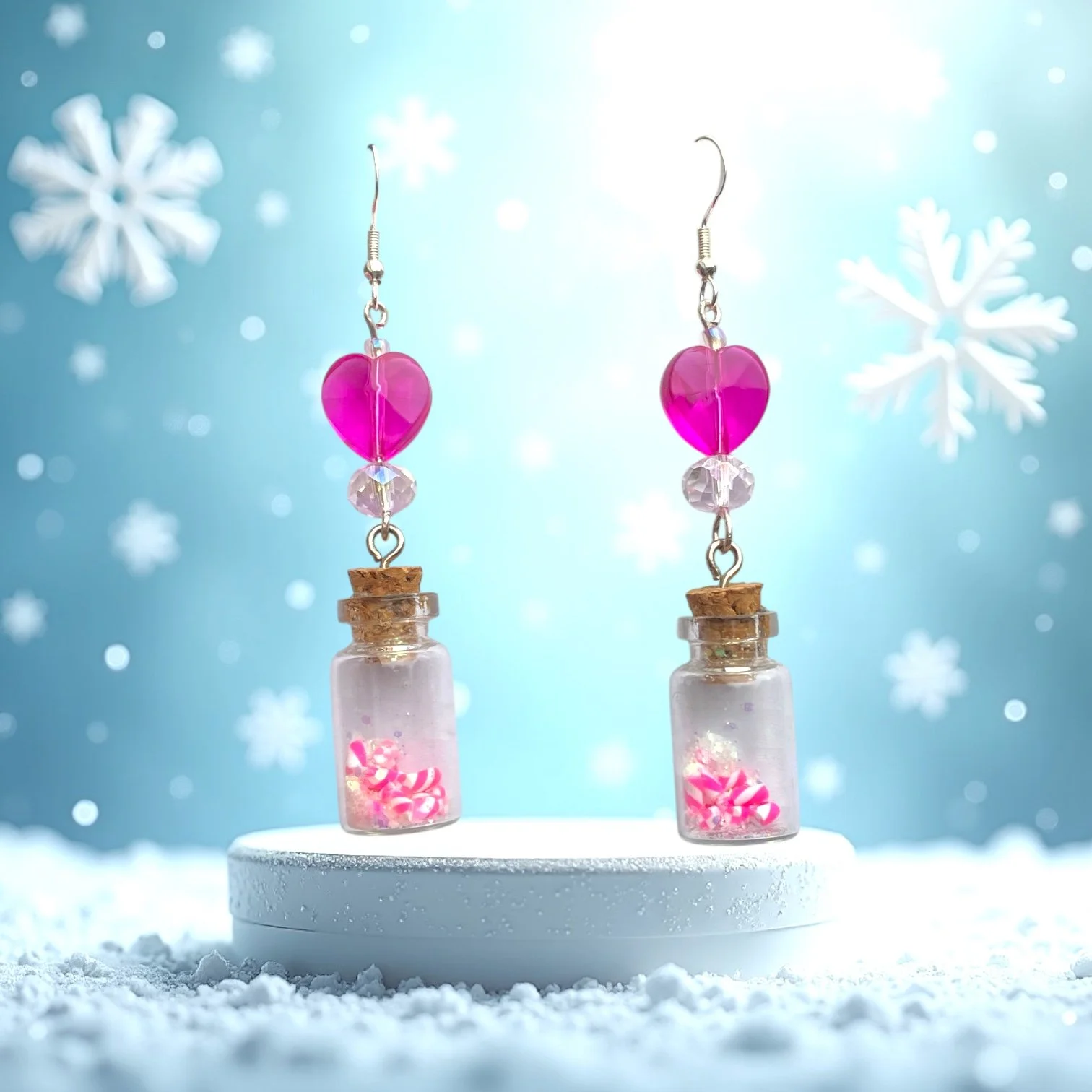 Add some festive cheer to your look with these large, fun statement earrings featuring smiling gingerbread girls dressed in sparkling holiday style! Each one wears a glittery Santa hat topped with a fluffy white pom, bringing instant Christmas joy. Accented with repurposed crystal-style beads that catch the light beautifully, these earrings blend playful charm with eco-conscious flair. Finished on sterling silver hypoallergenic hooks, they’re as comfortable as they are cute — perfect for spreading holiday sparkle wherever you go!